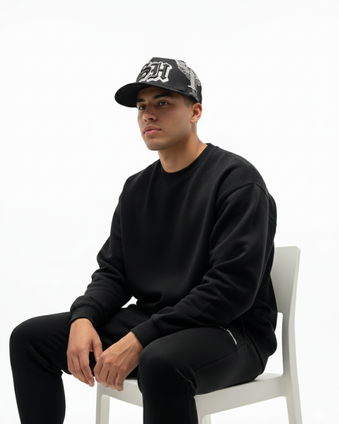 This premium black cap represents the ultimate fusion of bold gothic aesthetics and spiritual imagery. Every detail tells a story of strength, protection, and unwavering humility.